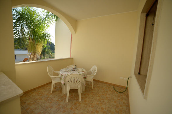 2 trilocali al piano primo della superficie interna di circa 80 mq, composti da veranda privata anteriore e balcone posteriore con tavoli e sedie in plastica, barbecue, soggiorno con divano letto da 1 piazza e mezza, 2 camere da letto di cui una matrimoniale ed una con 2 letti singoli, all'occorrenza trasformabili in matrimoniale, cucinino, wc con doccia, 2 posti auto in parcheggio interno.
